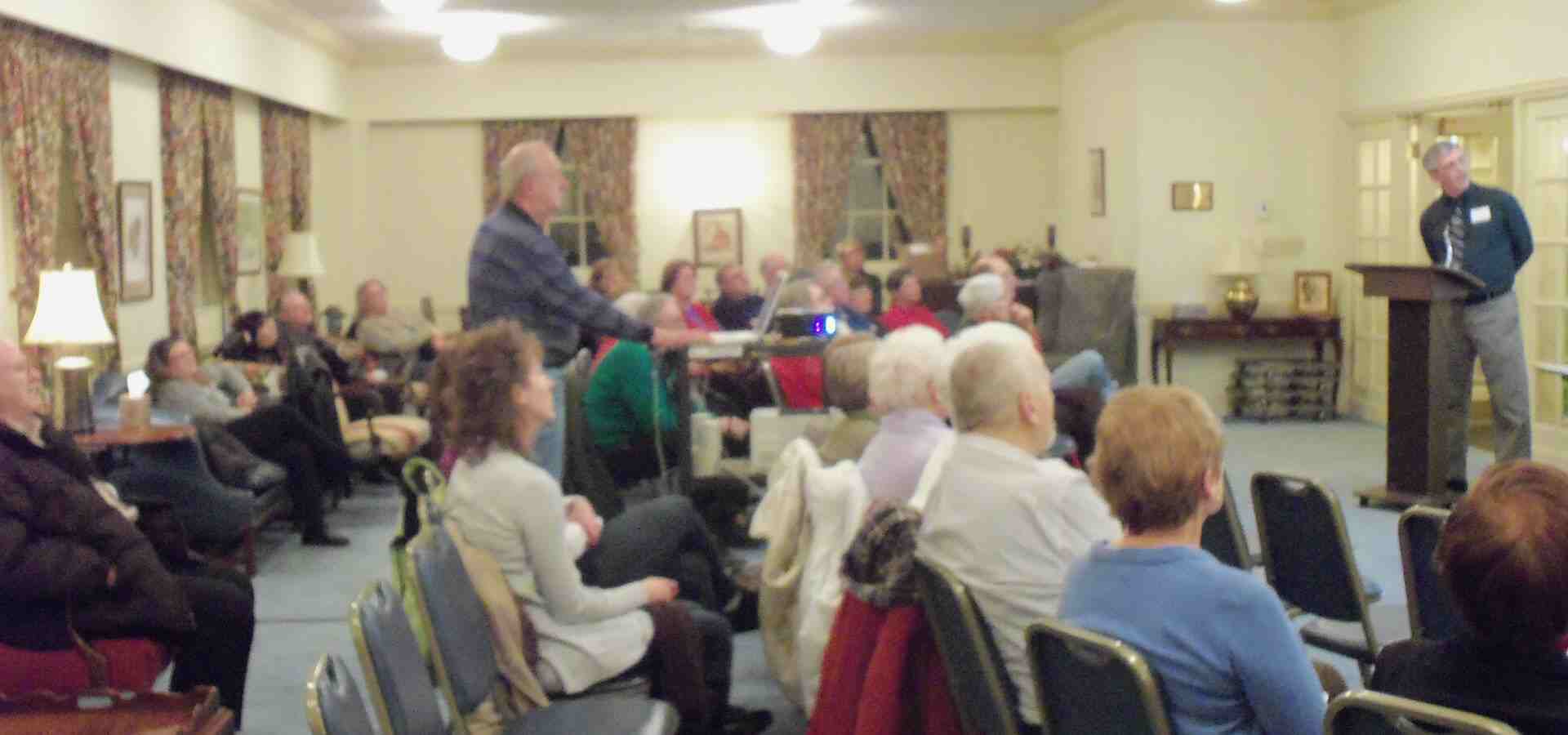 Me, left, talking to some members of the Wauwatosa Historical Society after my talk on Jan. 8, 2013.