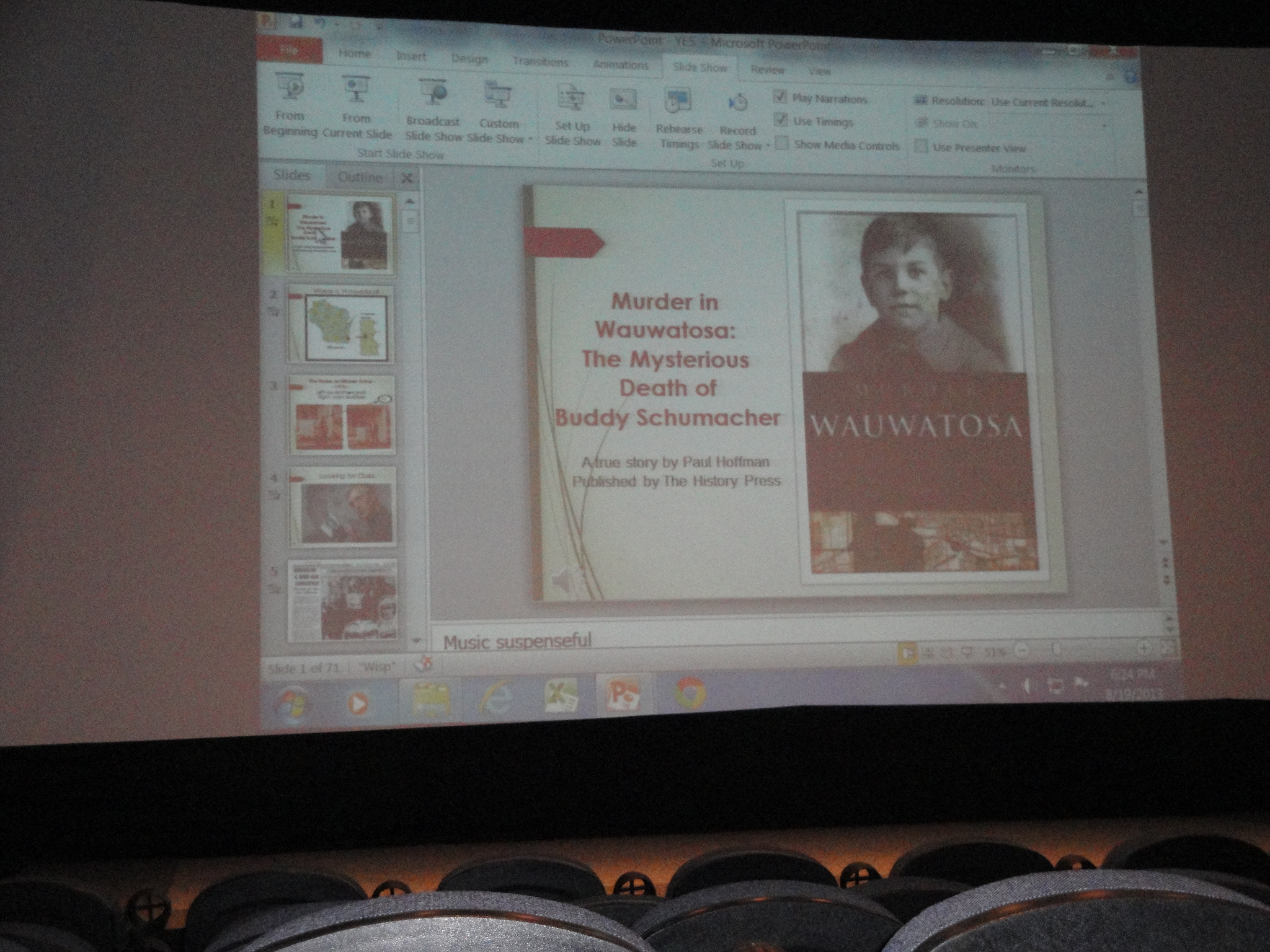 The PowerPoint presentation included sound effects and portions of newspaper stroies read over the slides.