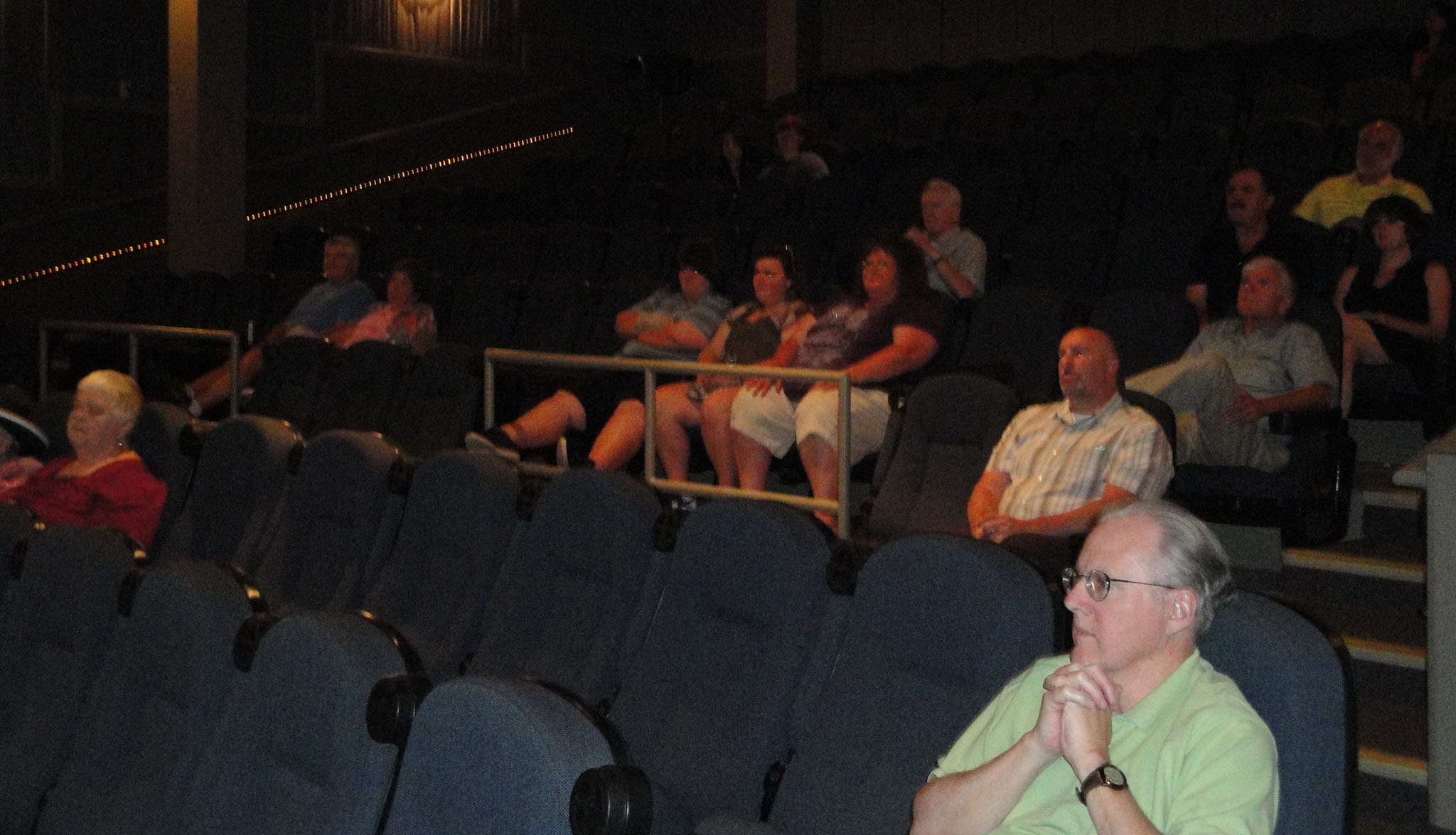 Audience members listen intently.