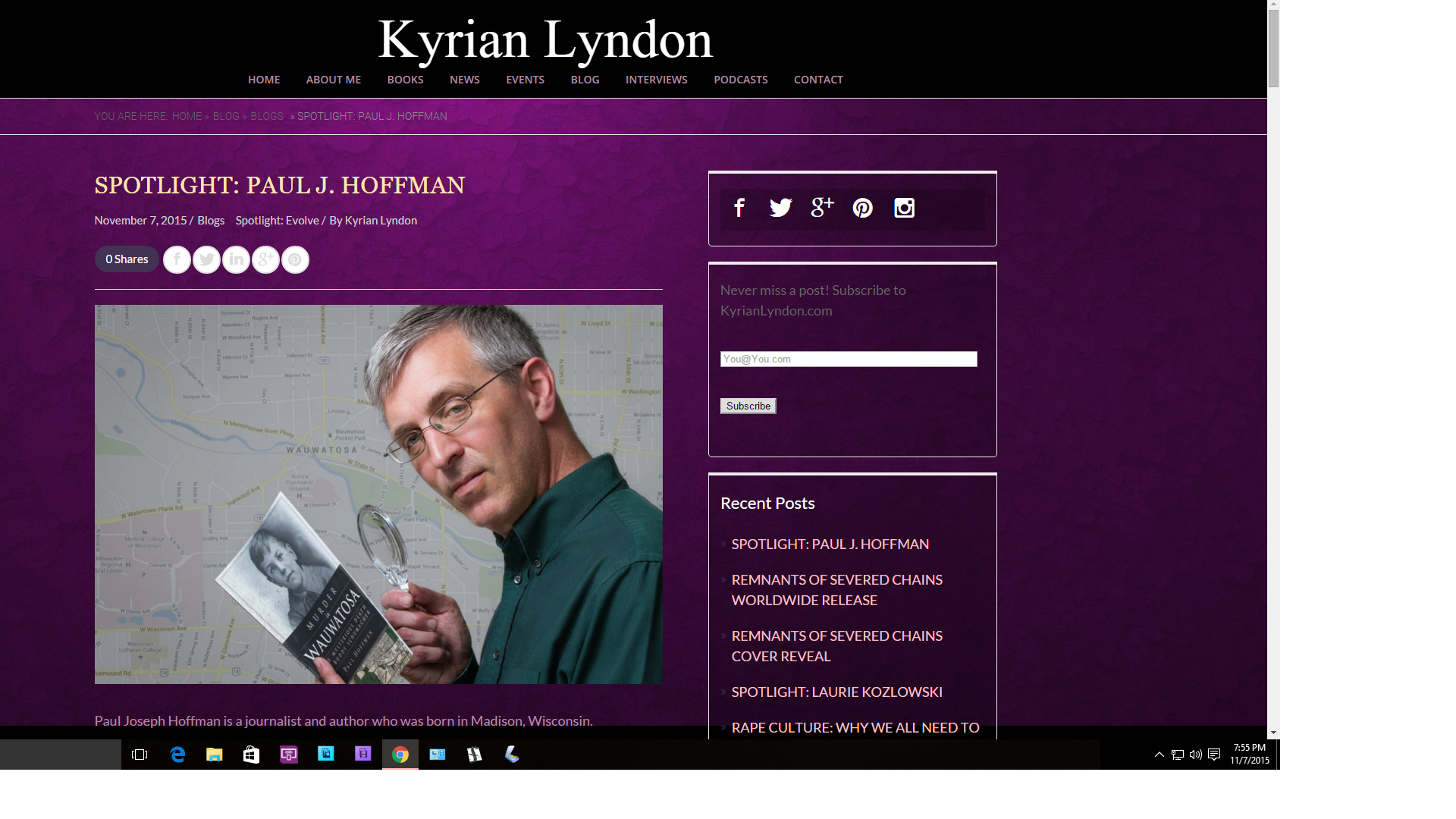 The road to this interview started when a mutual author friend, Michael John Sullivan, introduced us. Kyrian said she was doing this project where she profiled authors who had overcome some sort of hurdle.