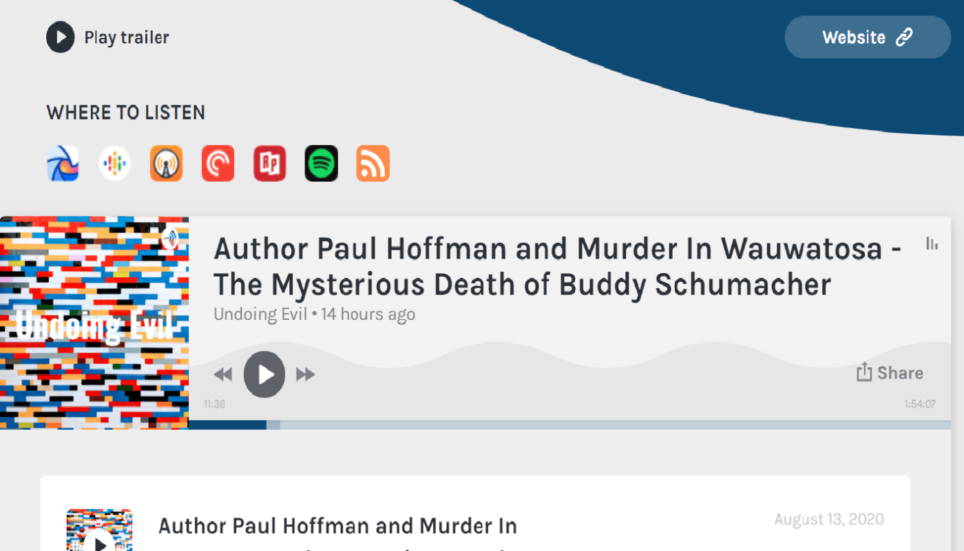A few months after being asked to be interviewed for a podcast centering on true crime, Undoing Evil‘s first episode went live last night (Aug. 13) featuring me and my first book, Murder in Wauwatosa: The Mysterious Death of Buddy Schumacher. That book tells the story of an 8-year-old boy who went missing in 1925 from his home near Milwaukee and all the odd details surrounding his disappearance and the subsequent investigation into his killing.