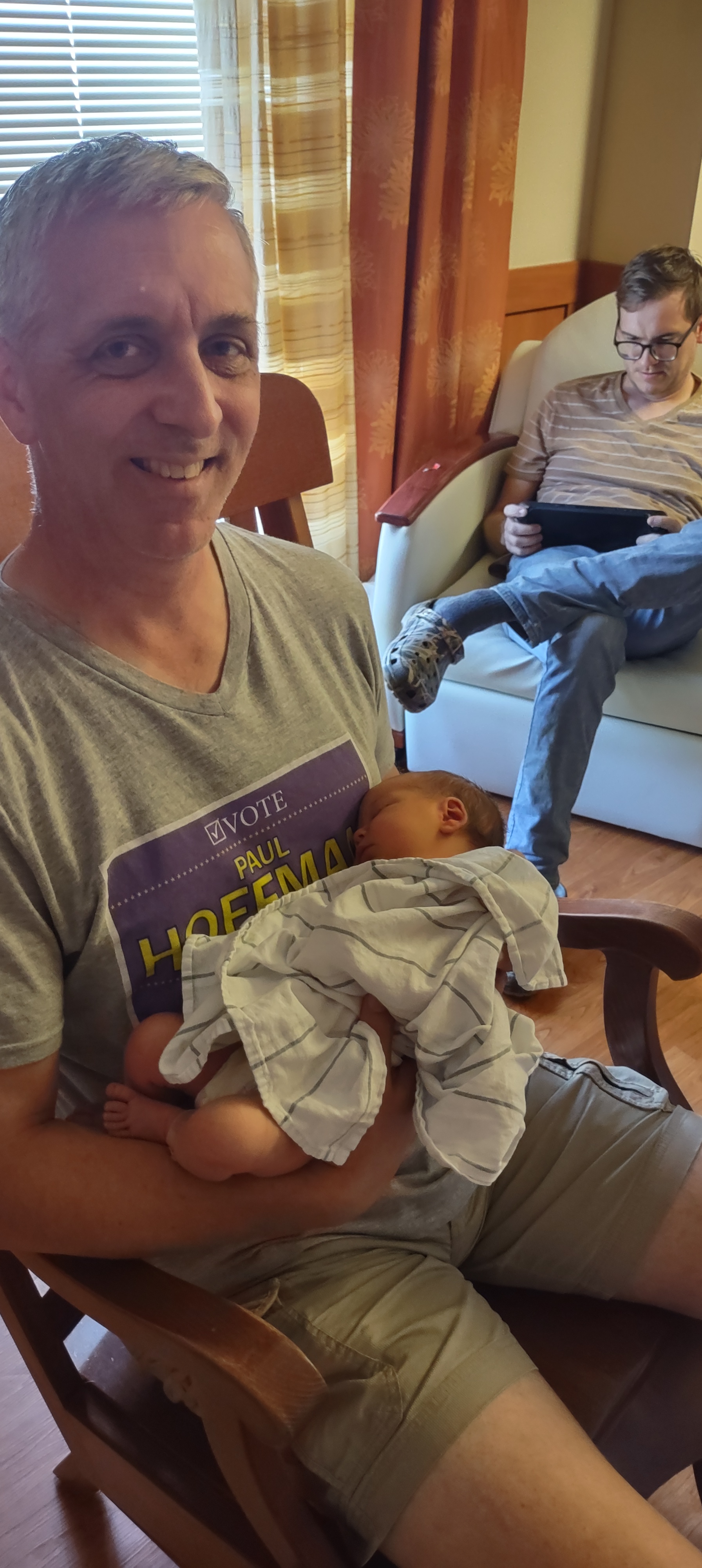 My wife decided she wanted to be called Gramma Hoffman, so I went with Grandpa Hoffman, which seems a tad odd to me because that’s what I called my dad’s dad. My dad got labeled “Papa” by my nephew, whose attempts at “Grandpa” came out that way. So the moniker “Grandpa Hoffman” skipped a generation.