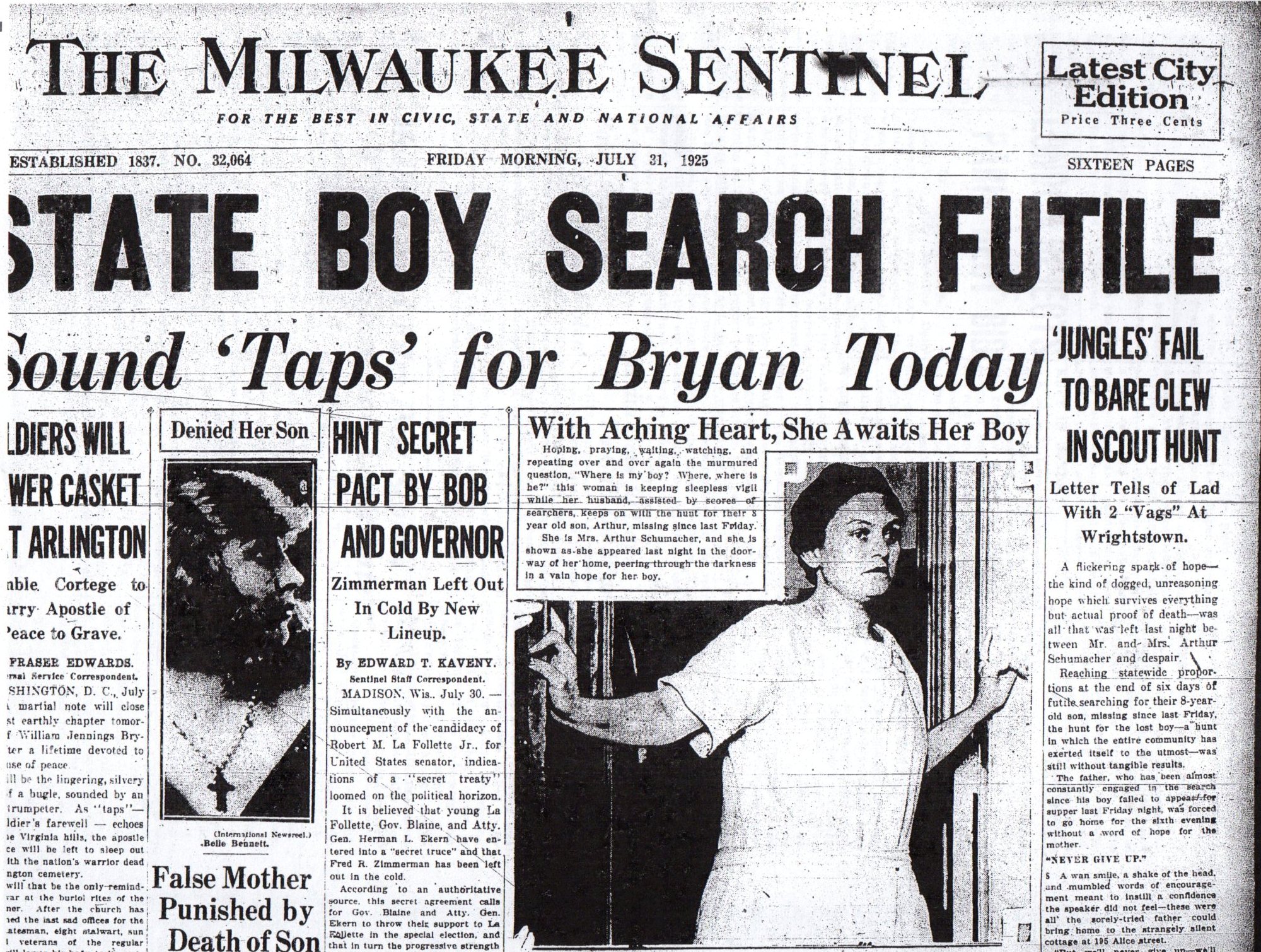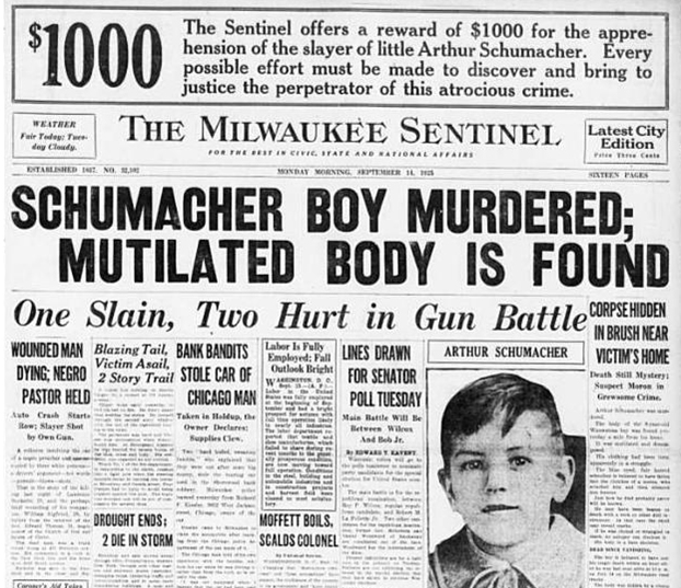 The discovery of Buddy’s body was announced on the front page of the Sept. 14 Milwaukee Sentinel.